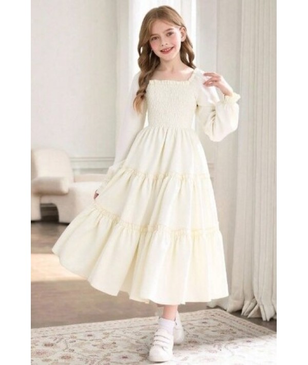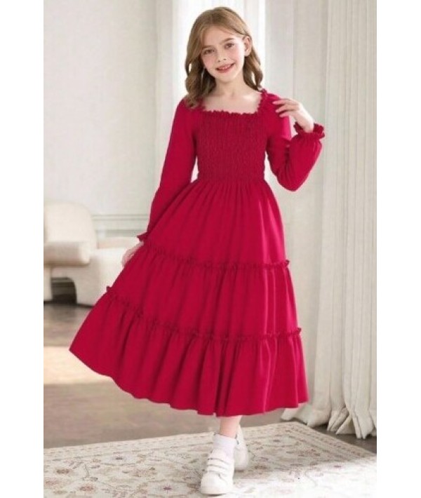 Kız çocuk elbisemiz ayrobin kumaş eteği iki parça büzgülü üst bedeni lastikli fermuarsız model