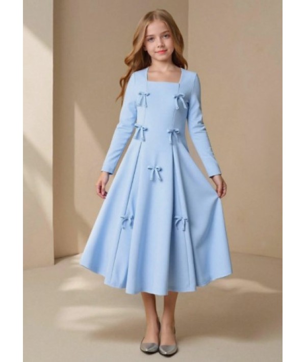 Kız çocuk yeşil kuşaklı elbise ayrobin kumaş