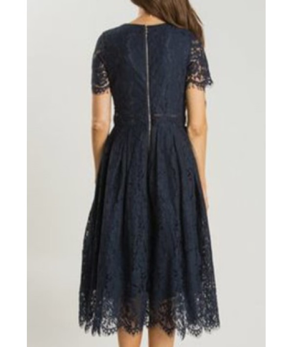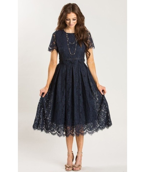 Midi dantel elbise lacivert renktedir kordino dantel kumaş ve likralı astar kullanılmıştır